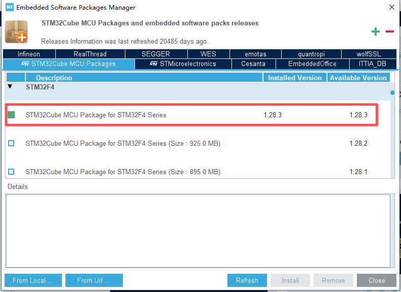 注意:这里安装STM32software packages是需要使用科学上网的,不然无法连接,因管理规范,这里就不给出科学上网方法了。