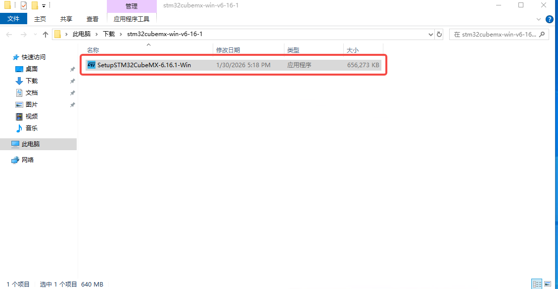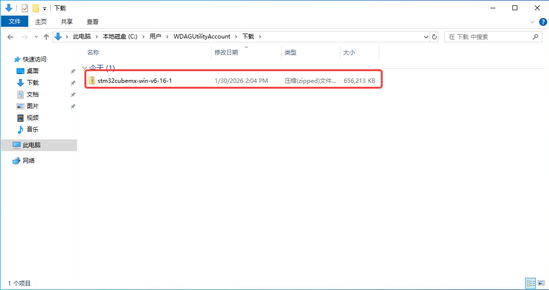 首先按照上述方法下载STM32CubeMX,下载后如下图所示,可以看见是一个压缩包